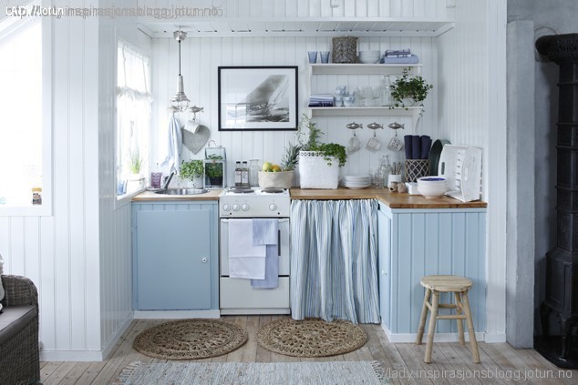 Kjøkkenet er forvandlet til et sjarmerende og hyggelig lite hyttekjøkken. Dette kun ved bruk av grunning og maling og enkle styling grep.