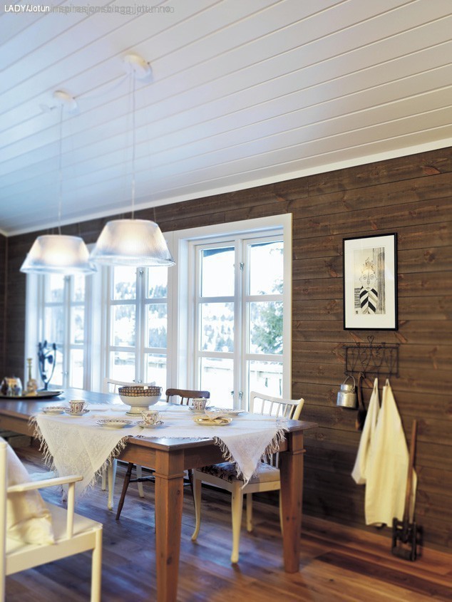 Tips! Naturlige materialer kan med fordel fremheves og settes i kontrast. Treverkets eldgamle mønstre mot moderne, malte flater. God balanse mellom tungt og lett. Sammen gir dette et harmonisk og stilfullt uttrykk. Flere bilder finner du i Hytteinspirasjonsalbumet vårt på Facebook!