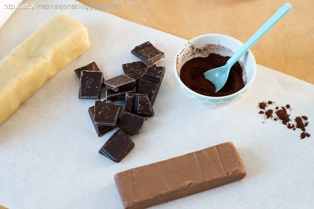 1 ”pølse” marsipan (jeg brukte den fra Odense, som smaker som hjemmelaget)