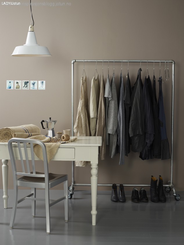 Veggene er malt med Lady i fargen 2201 Varm Lin, – en dempet varm og rødlig brun tone.