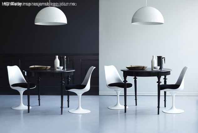 Interiører med et grafisk uttrykk har en egen evne til å fremstå som komplette og elegante. Det sorte bordet er malt med LADY Supreme Finish Superblank. Og veggen er malt med LADY Pure Color Supermatt.