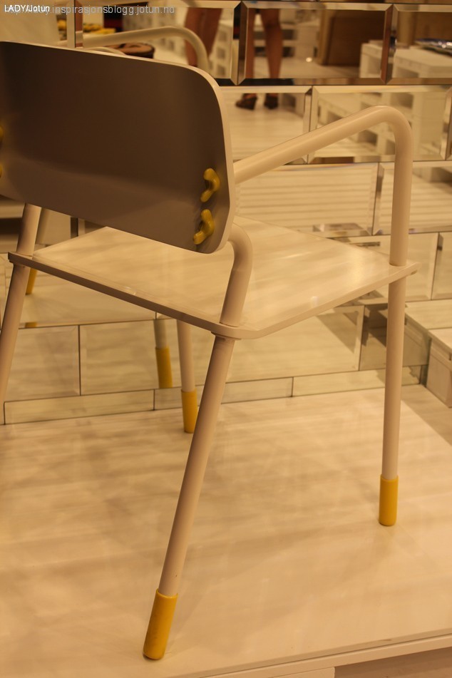 Colourblock og Coloursplash er ord som beskriver et lite strøk av farge på forskjellige interiørelementer…… her en hvit stol med gule sokker:)
