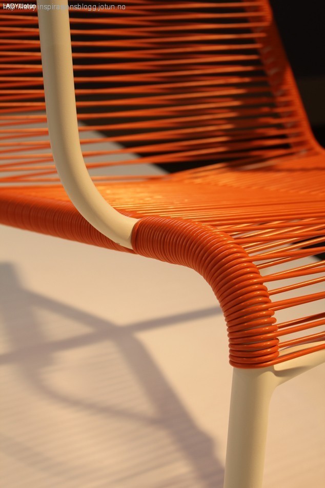 Fargen LADY 10431Vital fra vårt siste fargekart var en gjenganger på veldig mange interiører på messen. Her sees fargen på veggen – samt på et utemøbel for 2013 fra italienske Zucchetti, Exteta.